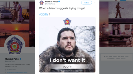 Media-savvy police in India’s Mumbai drove their anti-drug message home by employing a certain Jon Snow as its spokesman and having him warn about the dangers of substance abuse with his own Game of Thrones line.