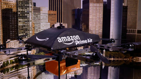 Amazon has filed a patent for delivery drones that also surveil customers – for their own good, the patent claims, suggesting a drone will inform people if there’s a fire or damage on their property and won’t snoop around.