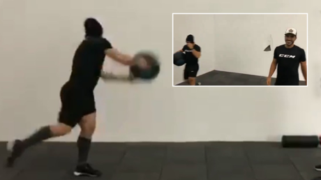Train hard, train smart: KHL player smashes wall during practice drill (VIDEO)