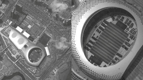 Satellite pics show more than 500 Chinese military vehicles in soccer stadium near Hong Kong border