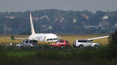Preview 74 people, including 19 children, required medical attention after a Russian jet made an emergency landing in a corn field outside Moscow, after it encountered a birdstrike. There were 233 people on board.