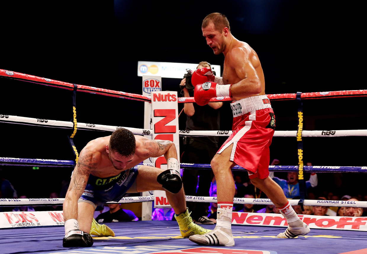 Cleverly’s gangly frame was twice sent sprawling to the canvas by Kovalev’s pinpoint timing and accuracy in the third round, and perhaps he would have been stopped but for a dubious intervention from referee Terry O’Connor on the bell.