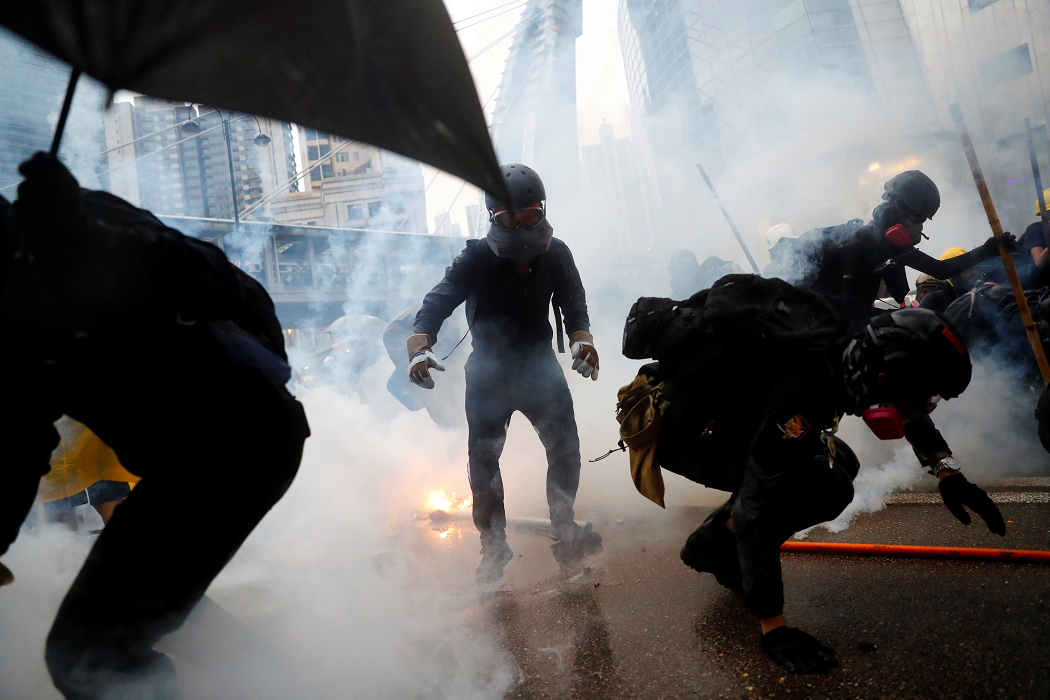 Demonstrators are surrounded by tear gas during a protest in Tsuen Wan, in Hong Kong, China, August 25, 2019. © REUTERS/Kai Pfaffenbach