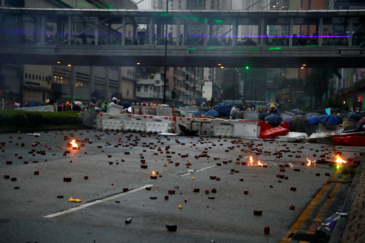 Photographs and videos show bricks and rocks strewn across Kong Kong’s streets as protesters clashed with law enforcement. Tear gas and water cannons were also used to clear barricades that had been erected by the protesters.