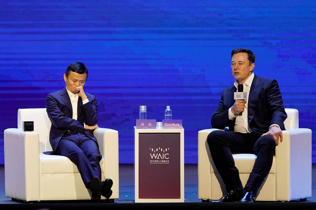 Tesla CEO Elon Musk and Alibaba Group Holding Executive Chairman Jack Ma attend the World Artificial Intelligence Conference (WAIC) in Shanghai, China, August 29, 2019 © Reuters / Aly Song