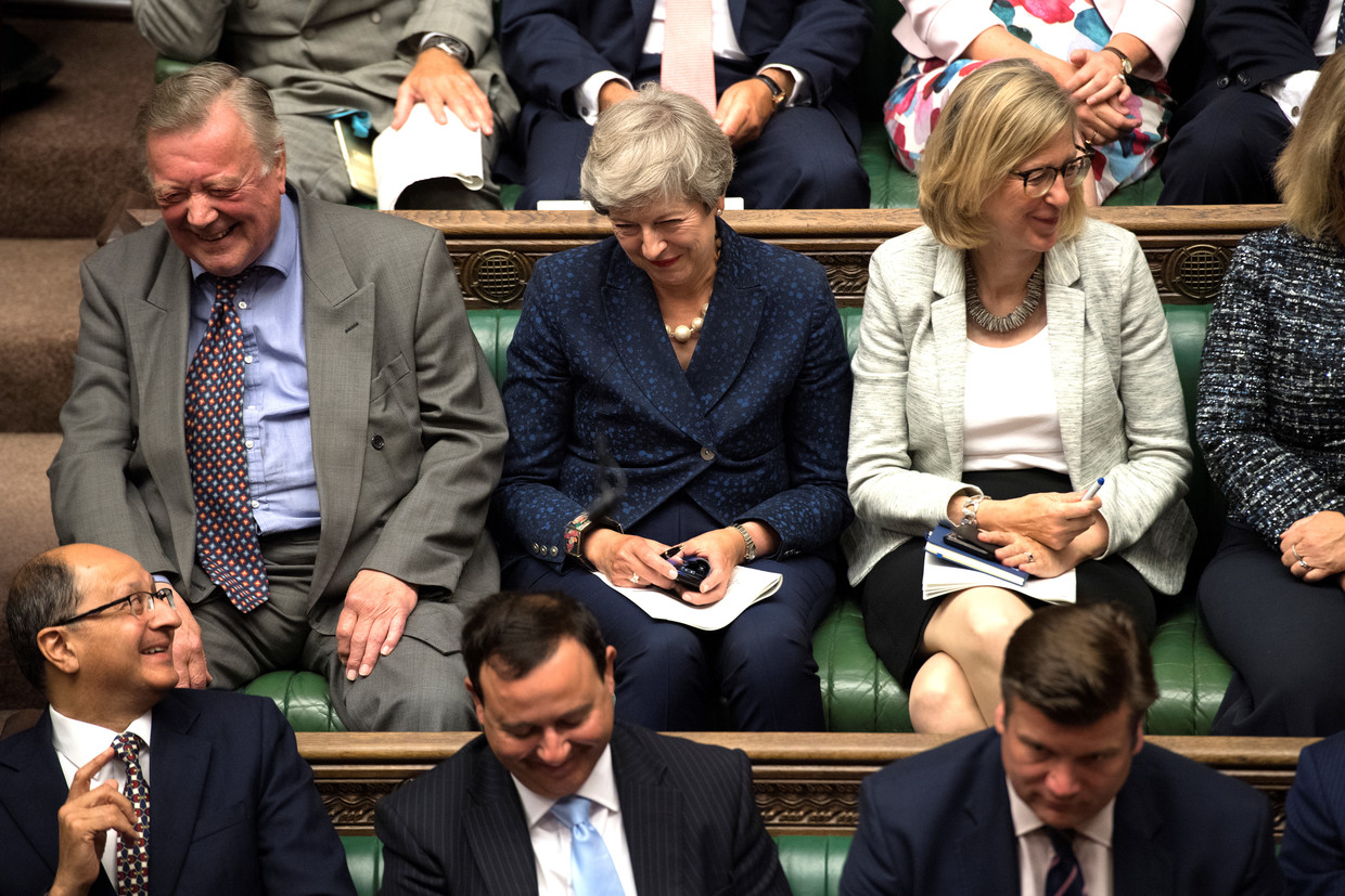 The former British prime minister could hardly contain her mirth from the Conservative back benches as she watched her successor face wave after wave of criticism from both sides of the House of Commons on Tuesday, her first day back in the chamber since stepping down.