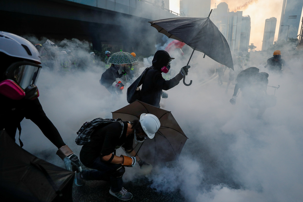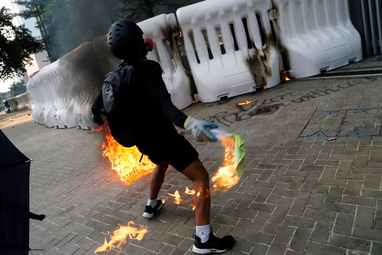 Although there were fewer people on the streets compared to previous weekends, the violence seemed to be on the rise in China’s semi-autonomous region. The situation became particularly tense outside the Chinese People’s Liberation Army base in the city’s Admiralty district. Protesters blocked a nearby road and attacked law enforcement with various projectiles