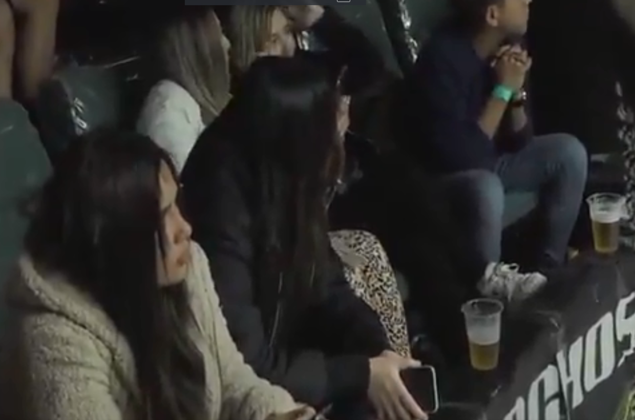 The subsequent shot appears to show where the drink came from – with two women sitting in the crowd with a half-finished beverage in front of them.
