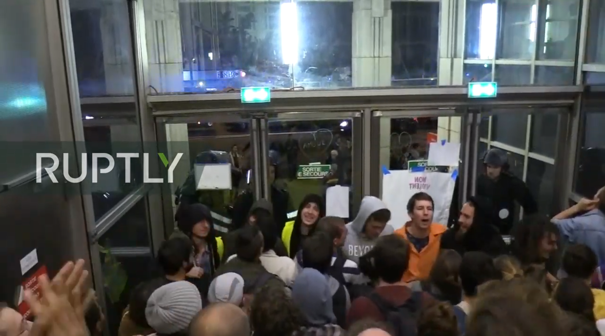 Police PEACEFULLY disperse eco-activists occupying Paris shopping mall