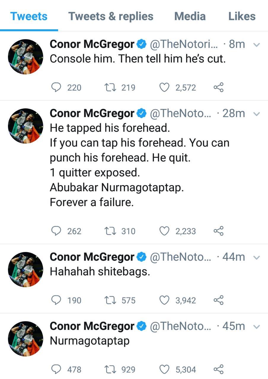 “Nurmagotaptap,” he tweeted as he launched into a handful of reactionary tweets following the fight.