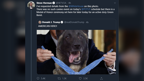 ‘Hard-hitting journalism’: Reporter FACT-CHECKS blatantly photoshopped image of ‘American hero dog’ being honored by Trump