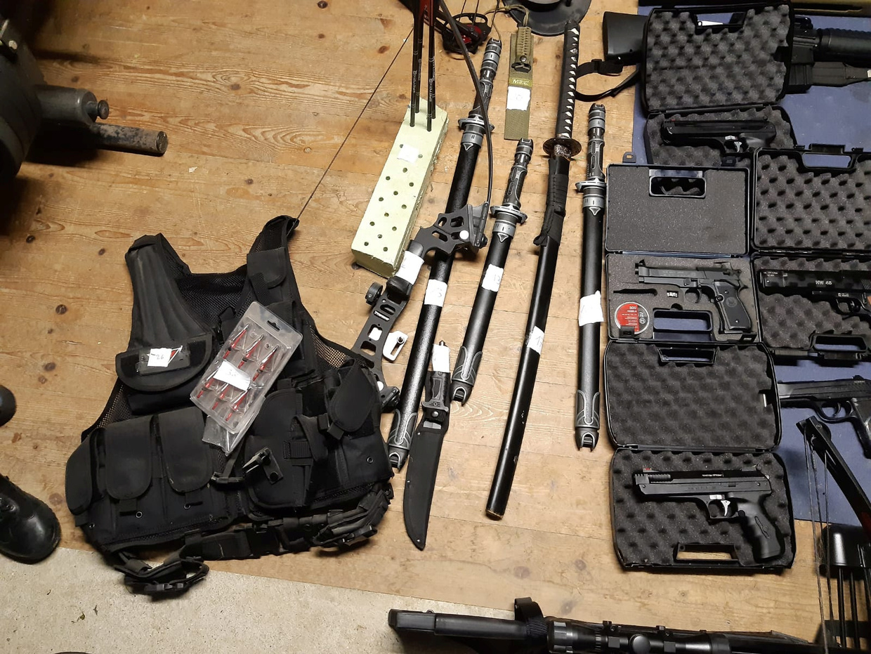 The weapons captured in the raids include military-style and hunting rifles, pistols, knives and even a crossbow. Police did not specify what type of explosives were found.