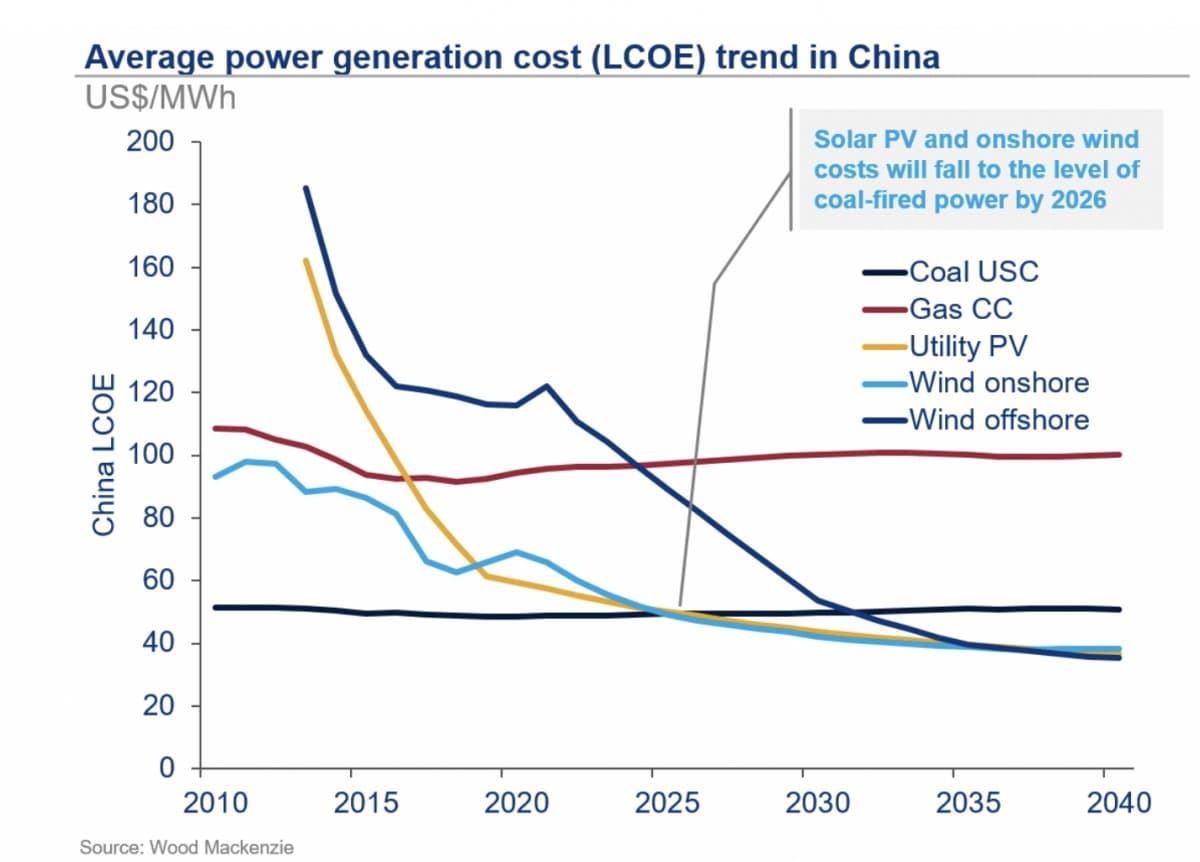 As China continues its long and painful move away from coal, solar and wind energy are becoming increasingly competitive.