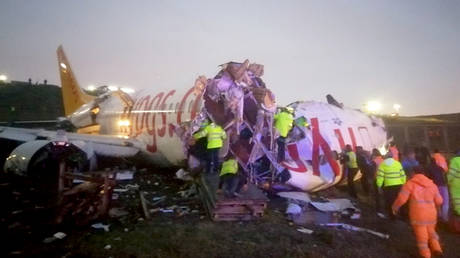 The blood-chilling accident occurred at Turkey’s second-largest airport, Sabiha Gokcen, on Monday when the packed aircraft with 177 people on board overshot the runway and tumbled down a steep hill.