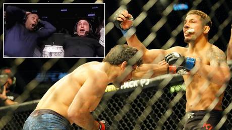 In video footage shared on social media the cage announcer can be heard calling on the crowd to calm down and leave the octagon.